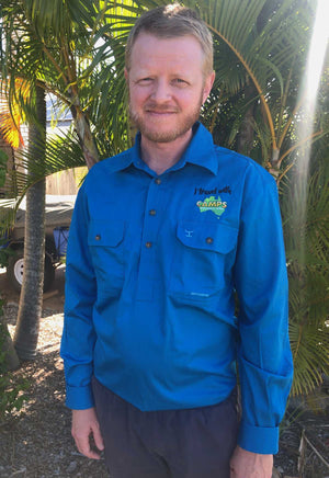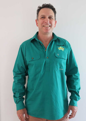 We chose half button workshirts, and we've sourced them from an Australian company in Brisbane.